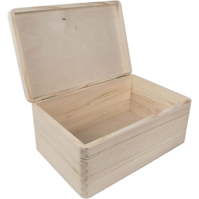 Bote de rangement en bois avec couvercle | 30 x 20 x 13 cm | Coffre uni non peint dcoratif