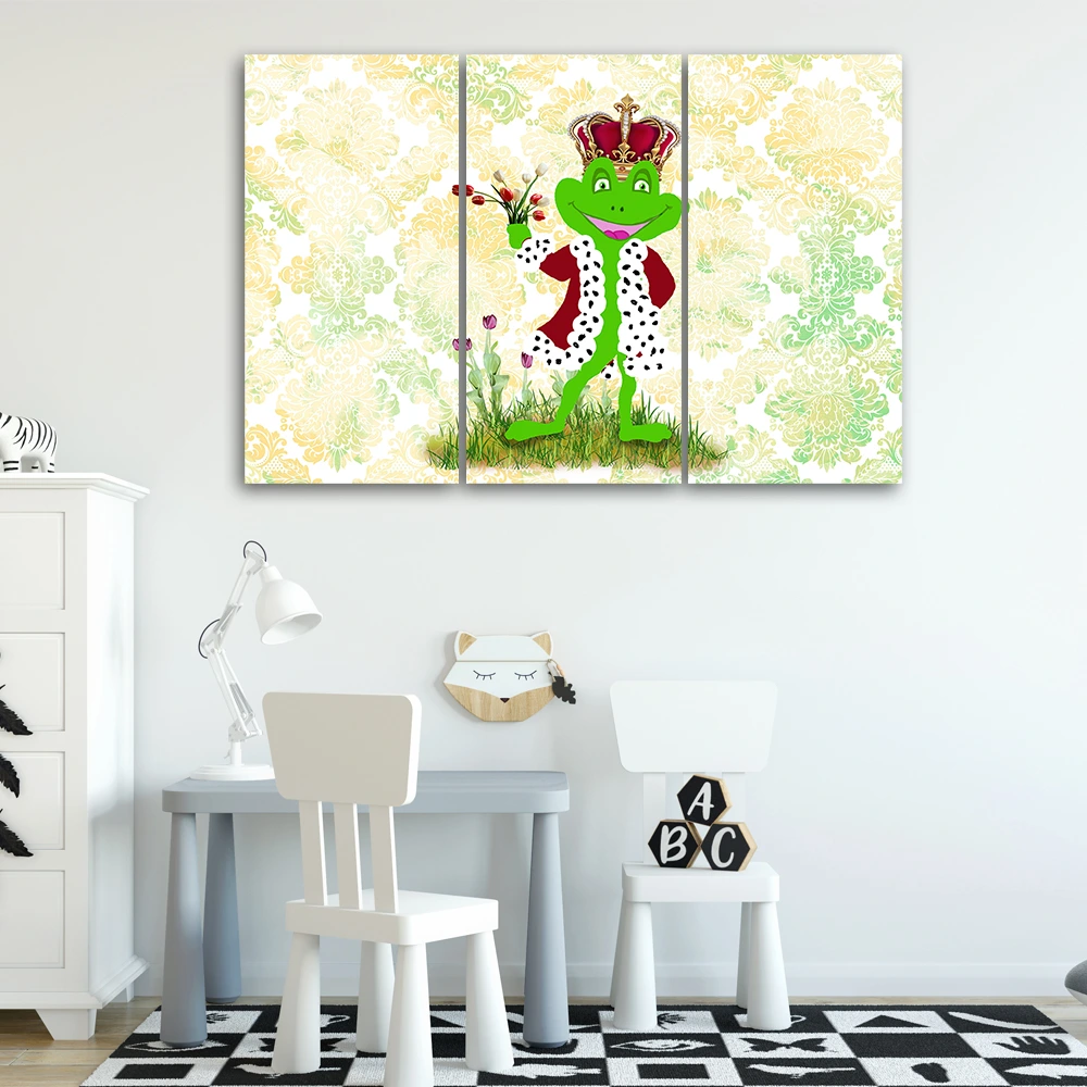 Leinwandbild 3-teilig, Frosch Tiere Kinder | wall-art.de