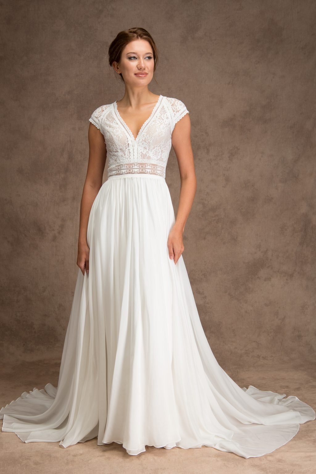 Sloane Dress | Short Sleeve Silk Lace Wedding Dress Try At Home