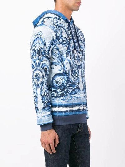 Dolce & Gabbana Sweater In Printed Cotton With A Hood In Blue | ModeSens